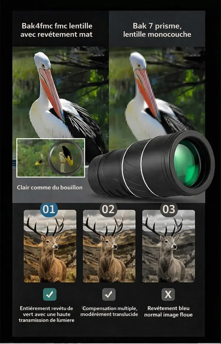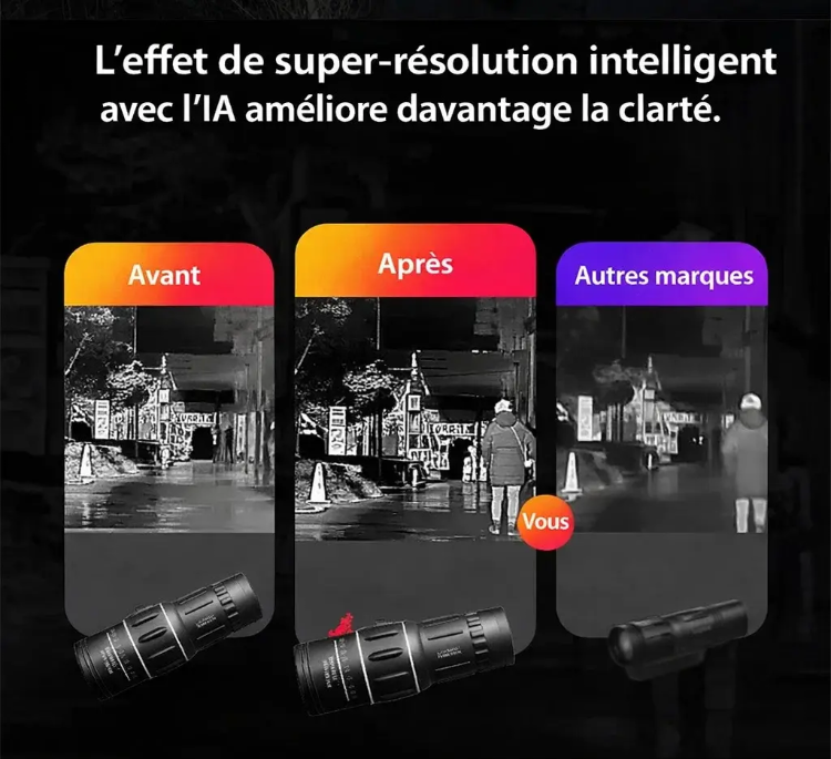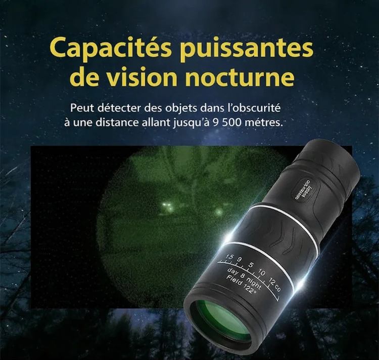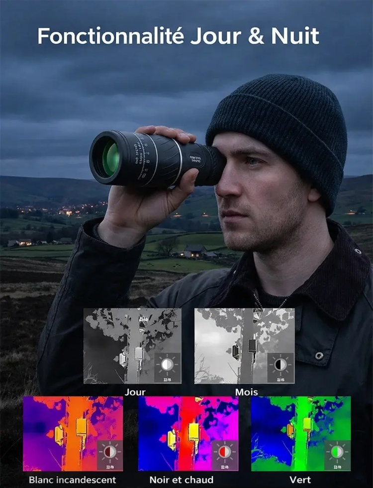 👍 Il vous permet de voir les imperfections sur le visage des gens à 8000 mètres de distance.🔭 Ce monoculaire de vision nocturne HD 16X52 offre une clarté inégalée.😊 Il agrandit non seulement l'image de 10 fois, mais offre également une clarté proche de la vision humaine. Il utilise les technologies FMC et BAK4 pour restituer les couleurs les plus réalistes sur l'écran. Doté d'une certification d'étanchéité IPX5, vous pouvez l'utiliser en toute confiance, même par temps de pluie.