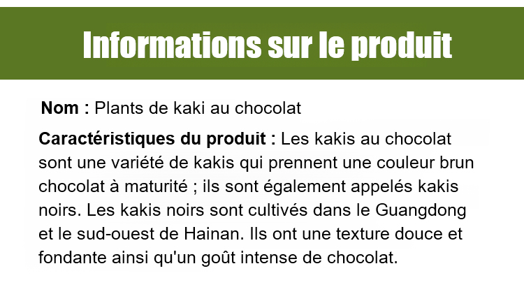 Stock extrêmement limité cette saison !Les plants de Kaki Perle Noire Chocolat se vendent en quelques jours seulement.